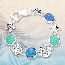 Antique Metal Stone Centered Turtle Link Stretch Bracelet