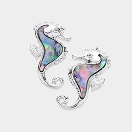 Sea Shell Accented Abalone Sea Glass Dangle Earrings