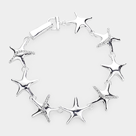 SECRET BOX_Stainless Steel Textured Starfish Link Cuff Bracelet