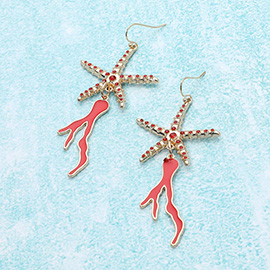 Metal Starfish Ceramic Shell Pearl Charm Drop Earrings