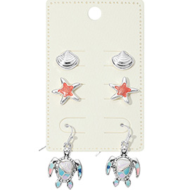 3Pairs - Mermaid Fish Seashell Stud Earring Set