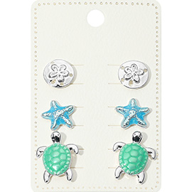 3PCS - Metal Whale Tale Starfish Sea Turtle Pendant Charm Set