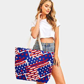 Anchor Printed Striped Rope Handle Beach Tote Bag