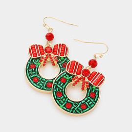 Enamel Gingerbread Christmas Wreath Dangle Earrings