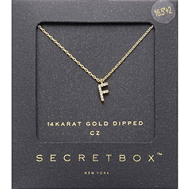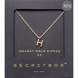 -V- Secret Box _ 14K Gold Dipped CZ Initial Monogram Pendant Necklace
