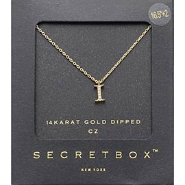 -I- Secret Box _ 14K Gold Dipped CZ Initial Monogram Pendant Necklace
