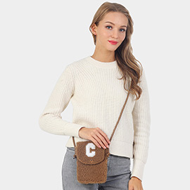 -C- Initial Monogram Faux Fur Pom Pom Knit Beanie Hat