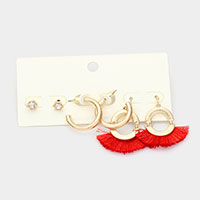 Thread Wrapped Square Hoop Drop Chain Tassel Necklace