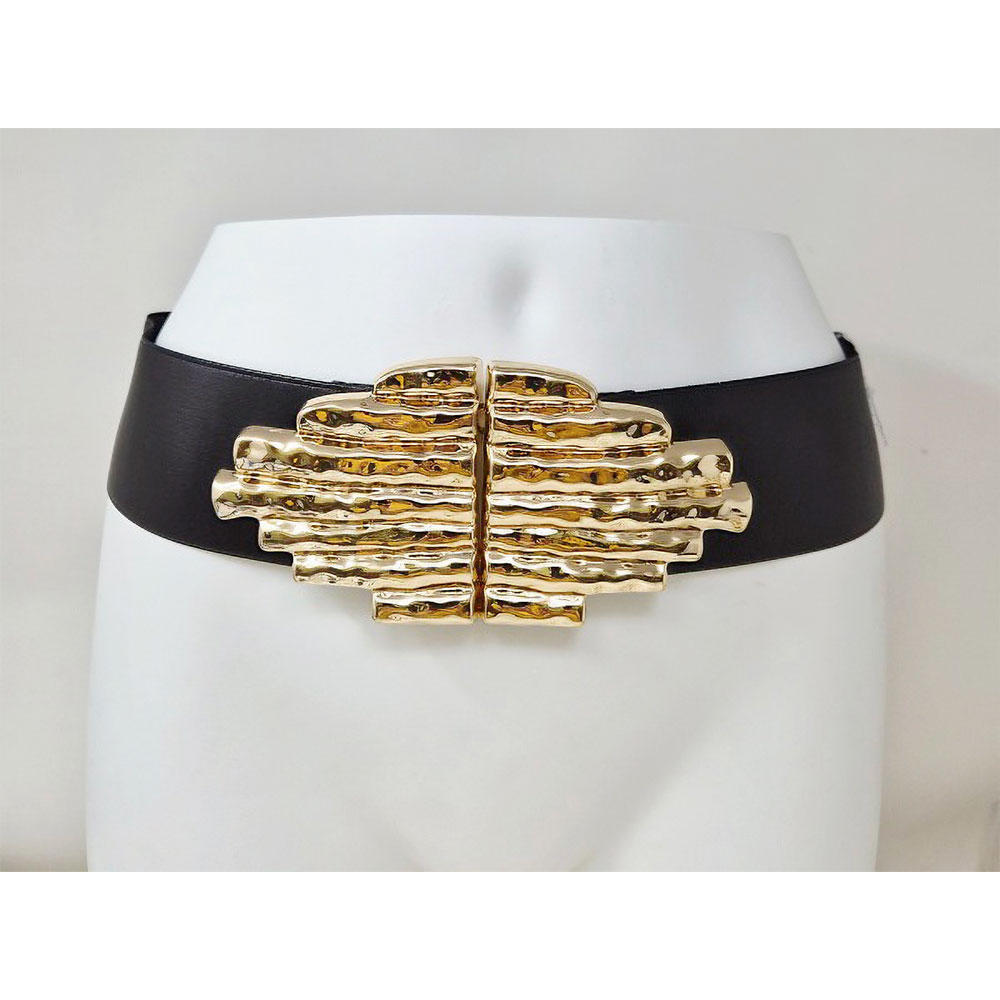 • Define your silhouette with this textured statement buckle waist belt, crafted with a bold design that blends elegance and edge. Its wide strap and eye-catching buckle make it a standout accessory, perfect for elevating casual looks or enhancing evening outfits.