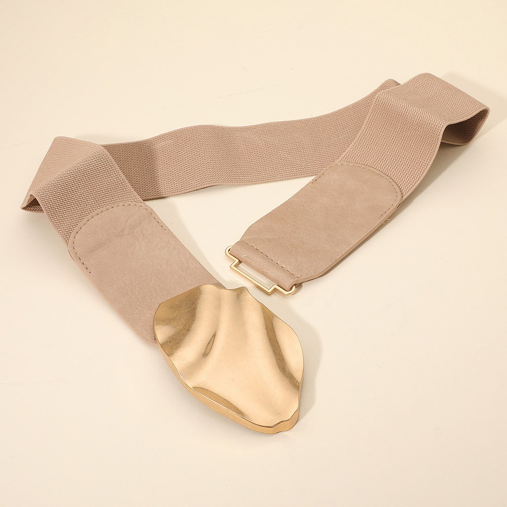 Bold Textured Metal Abstract Oval Buckle Accent Elastic Waist Belt