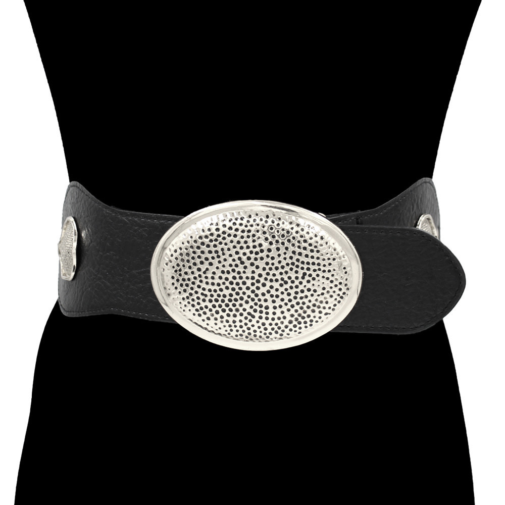 Bold Textured Metal Oval Buckle Accent Elastic Waist Belt