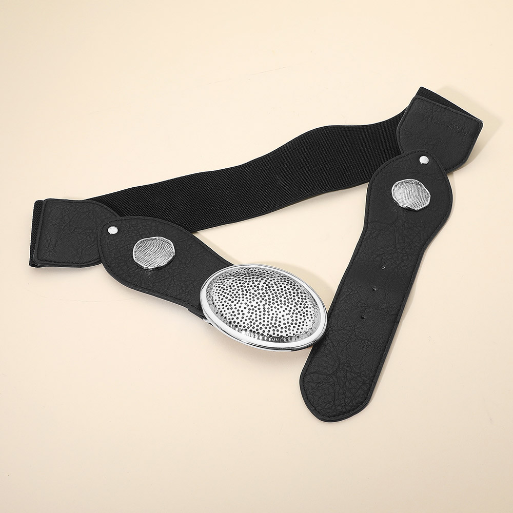 Bold Textured Metal Oval Buckle Accent Elastic Waist Belt Bold Textured Metal Oval Buckle Accent Elastic Waist Belt Bold Textured Metal Oval Buckle Accent Elastic Waist Belt
