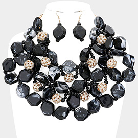 Western Boot Geart Flower Cross Horn Charm Station Beads Pearl Leopard Fabric Chain Layered Necklace