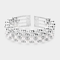 Square Cut Gem Beaded Stretch Evening Bracelet