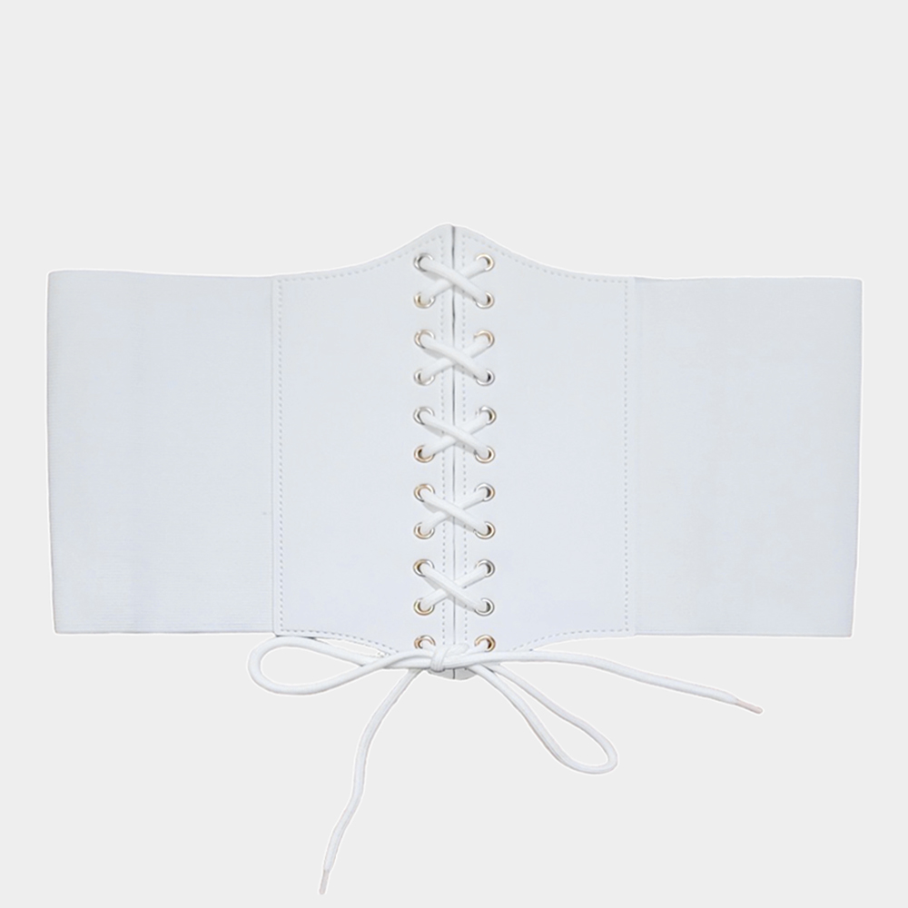 • Elegant waist belt corset featuring a front lace-up design with adjustable tie closure. Perfect for pairing with dresses, shirts, or tunics, this fashion accessory enhances your silhouette while adding a chic and structured touch to any outfit.