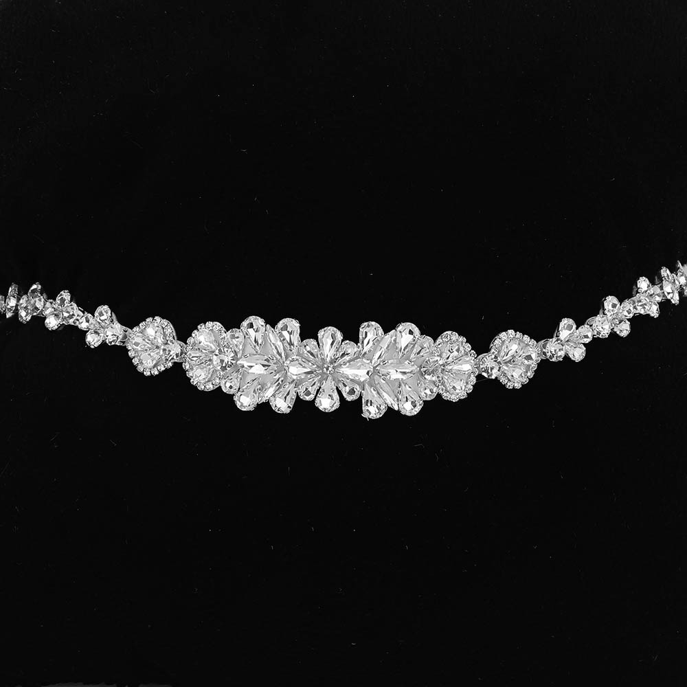 Crystal Flower Cluster Accent Wedding Belt Headband