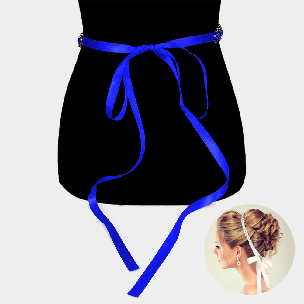 Floral Crystal Sash Ribbon Bridal Wedding Belt / Headband