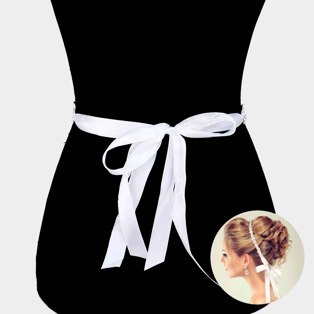 Details • Size : 18" X 0.3", 50" L • Versatile - Belt / Headband • Enhance your outfit with this slim crystal waist belt. Perfect for formal dresses, bridal gowns, and evening wear, it adds a refined sparkle and elegant finishing touch to any look. • CZ Cubic Zirconia