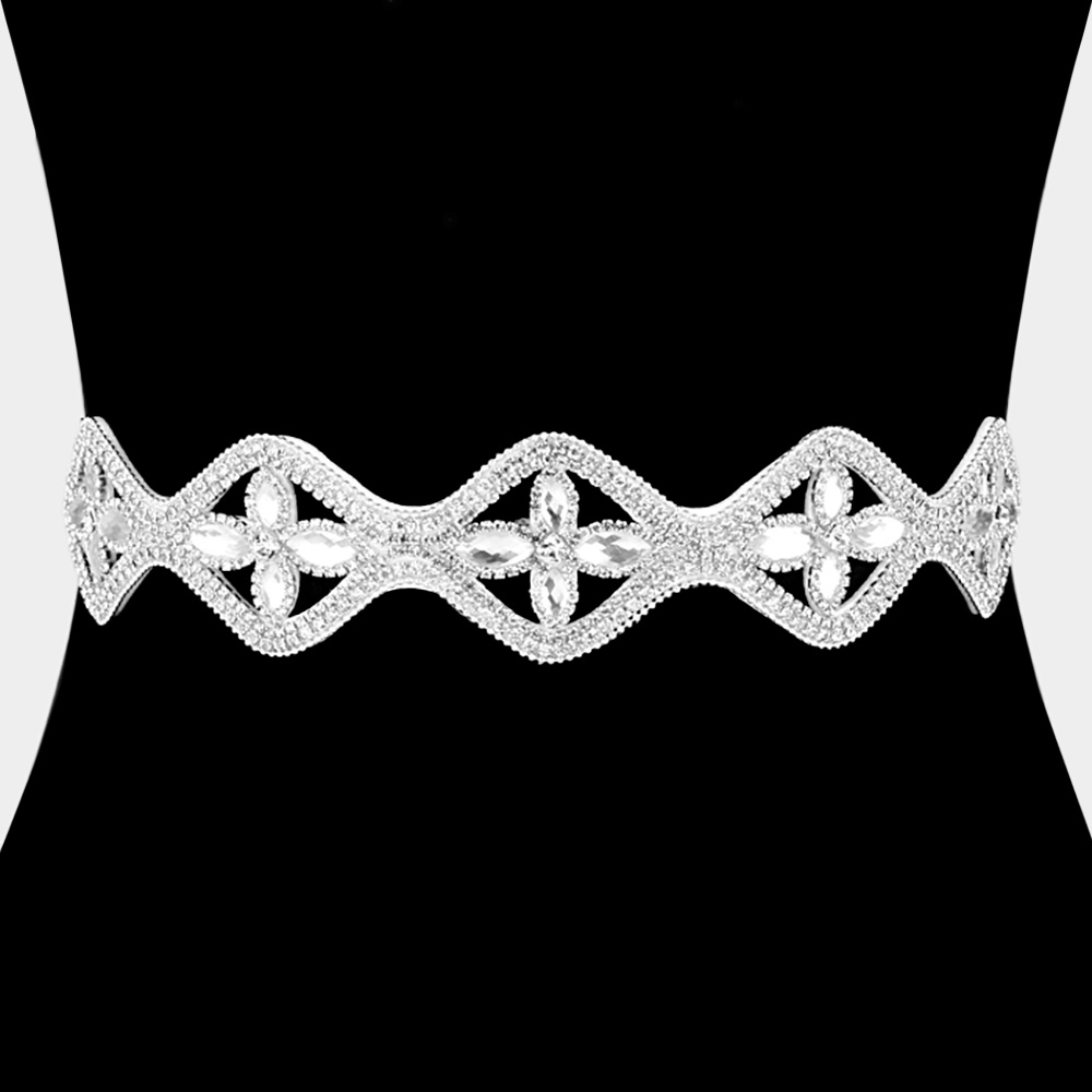 Glass Crystal Marquise Sash Ribbon Bridal Wedding Belt / Headband