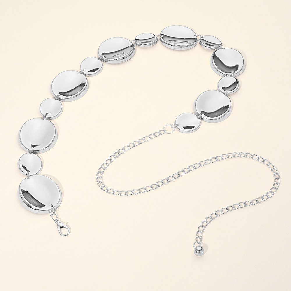 • Elevate any outfit with this sleek disc chain waist belt designed to define the silhouette with modern shine. Featuring smooth linked discs that sit comfortably at the waist, it adds refined statement appeal to dresses, jumpsuits, and evening looks, perfect for styling, layering, and standout occasions.