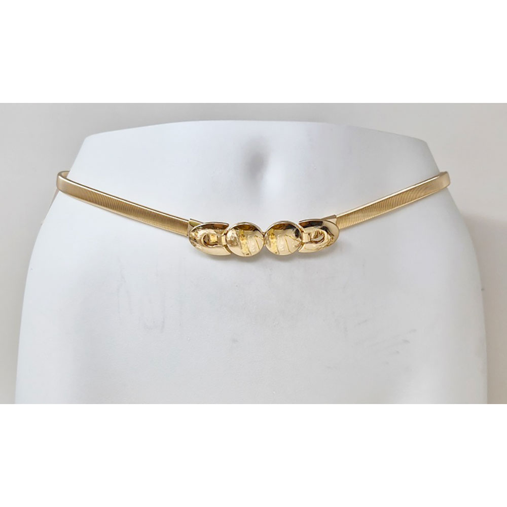 Details • Size : 0.8" H, 28" L • Stretchable • Hook Closure • Refine your silhouette with this elegant waist belt featuring a sleek strap and polished oval accents. Designed to enhance dresses and formalwear, this chic accessory adds a modern touch of sophistication, making it perfect for weddings, evening events, or elevating everyday looks. • Lead and Nickel Compliant