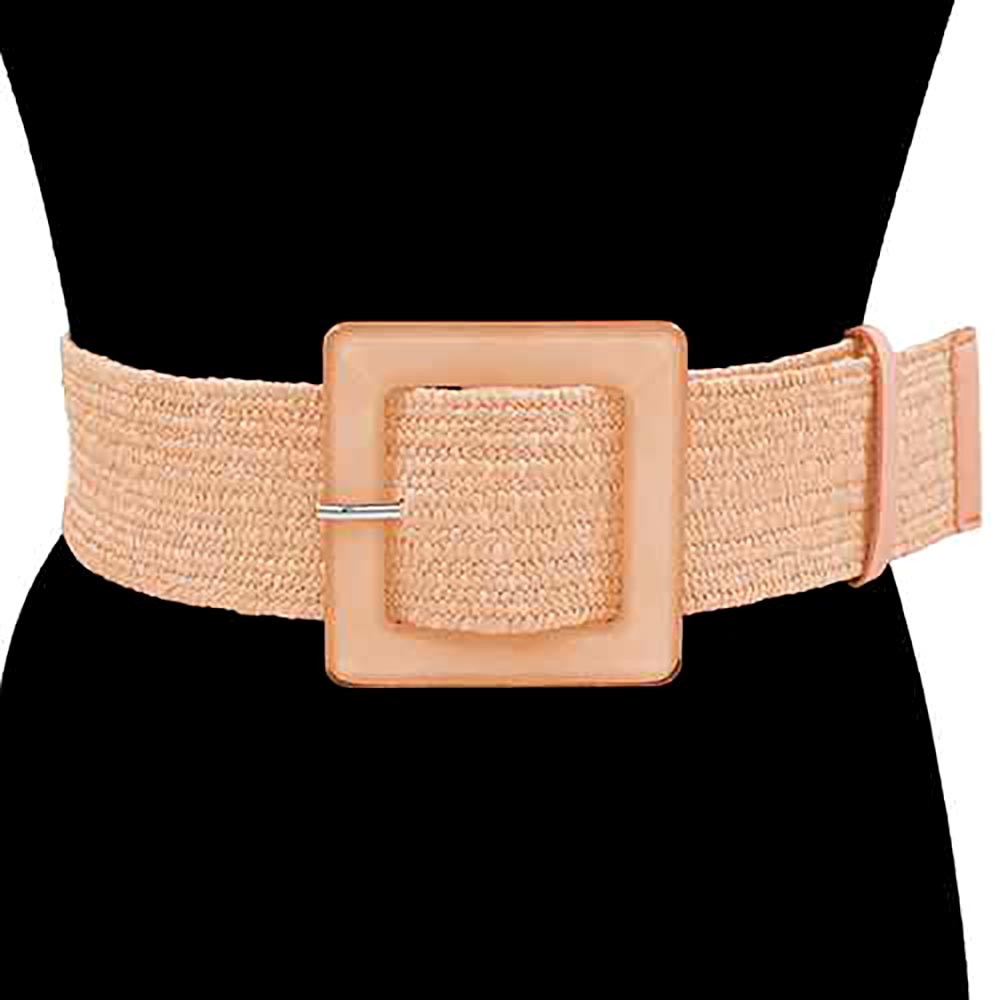 Resin Square Buckle Accent Raffia Adjustable Belt