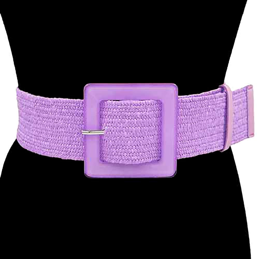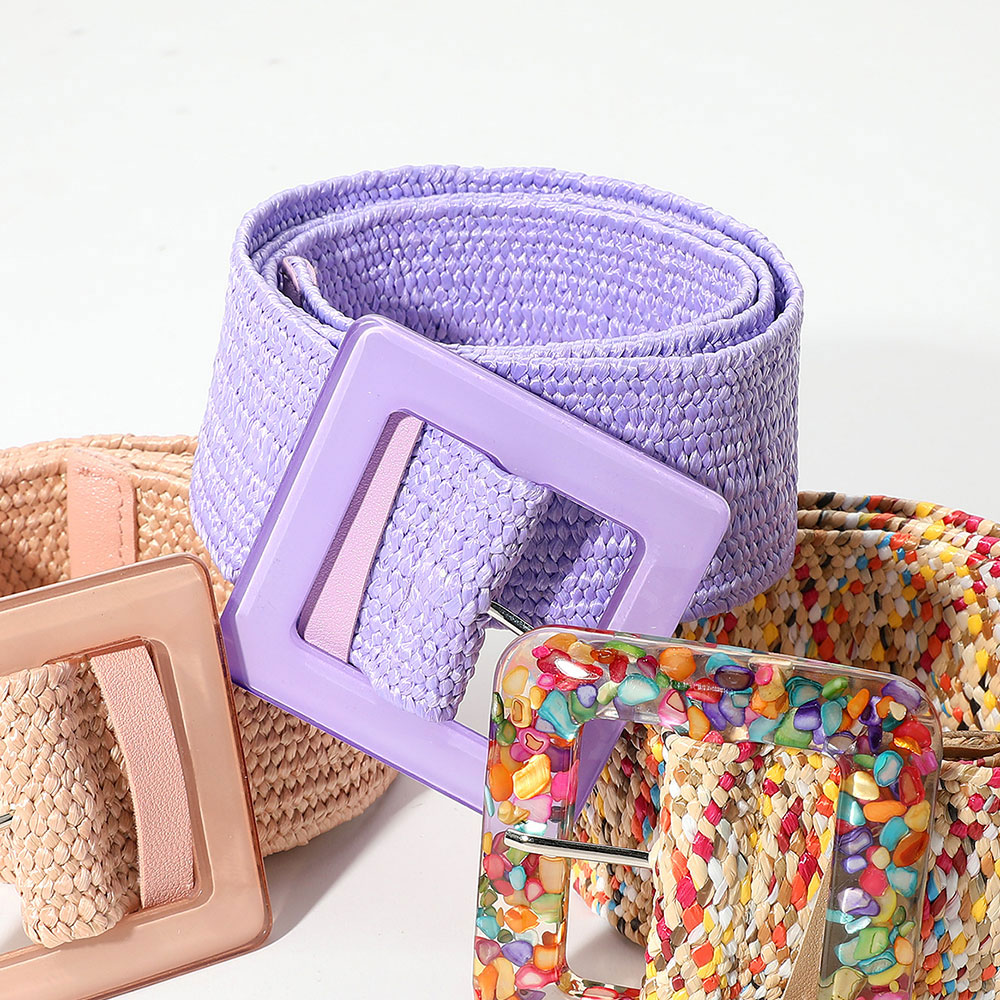 Resin Square Buckle Accent Raffia Adjustable Belt