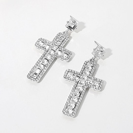 Rhombus CZ Stone Cluster Dangle Butterfly Pointed Evening Earrings