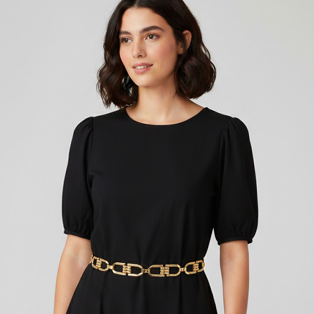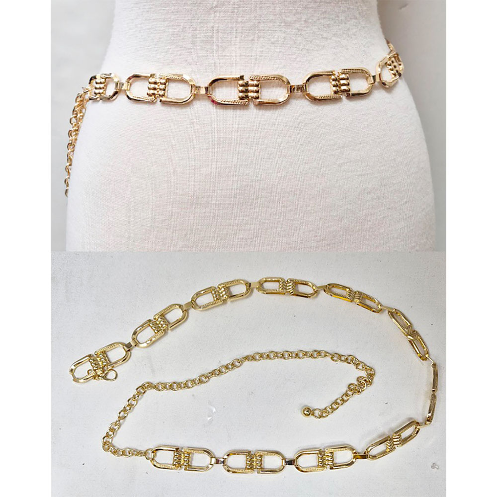 • Complete your outfit with this linked chain metallic waist belt, featuring textured rectangular links for a chic, modern edge. Adjustable for a comfortable fit, this belt is perfect for pairing with dresses, skirts, or eveningwear, adding stylish detail and a polished finish to any look.