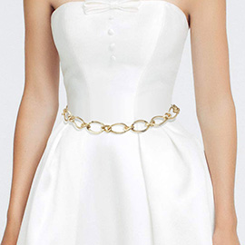 • Chic waist chain belt featuring textured oval links and knot accents. Adjustable length for a perfect fit. Ideal for elevating casual or formal outfits with a touch of bold style.