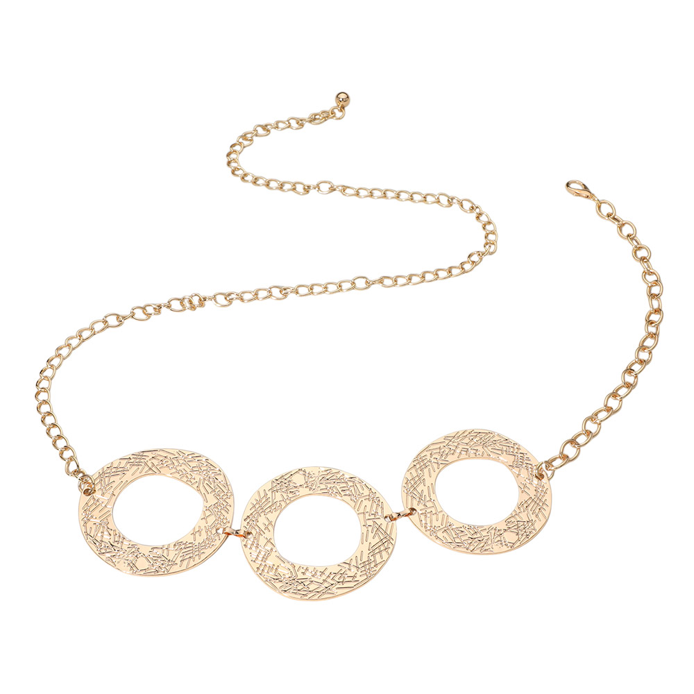 Open Metal Circle Accented Pearl Resin Beaded Double Layered Necklace