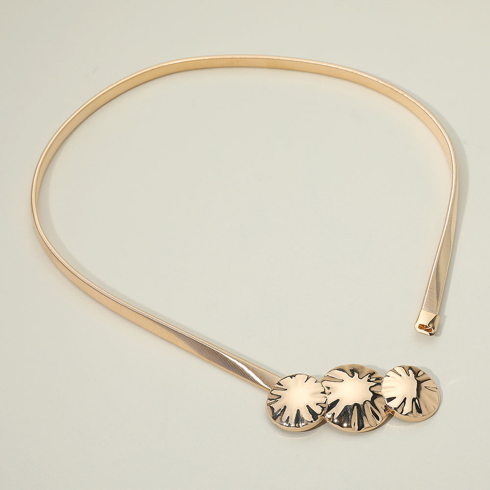 Triple Textured Round Buckle Accent Slim Metal Stretch Belt Triple Textured Round Buckle Accent Slim Metal Stretch Belt Triple Textured Round Buckle Accent Slim Metal Stretch Belt