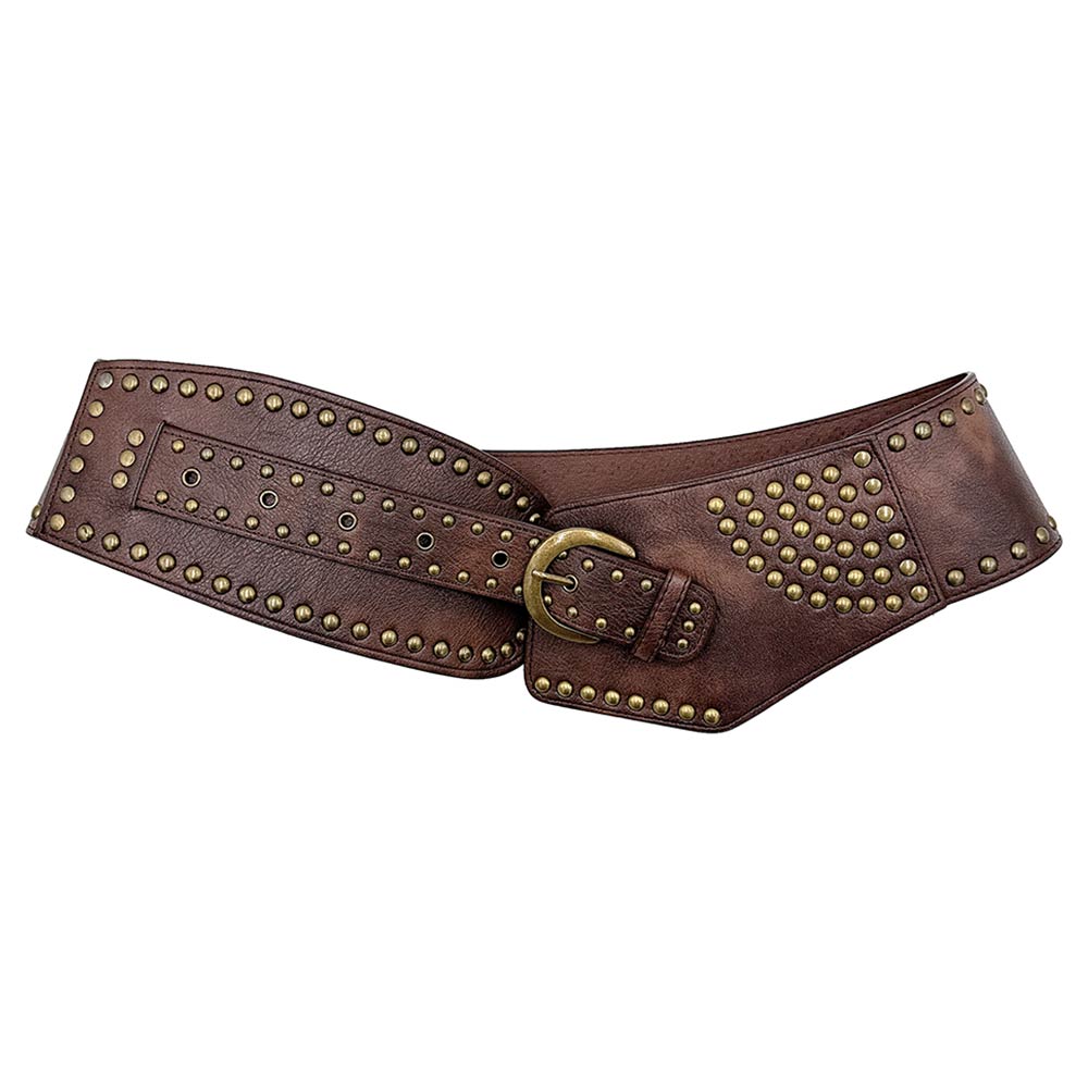 • This wide studded fashion belt features a bold statement buckle that instantly elevates casual and dressy outfits. Designed to define the waist and add edge to denim, skirts, and layered looks, it’s ideal for boutique styling, trend-forward collections, and everyday fashion statements.
