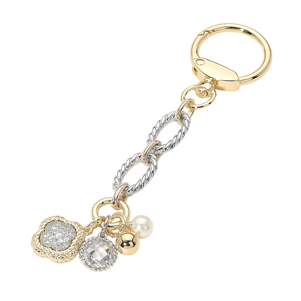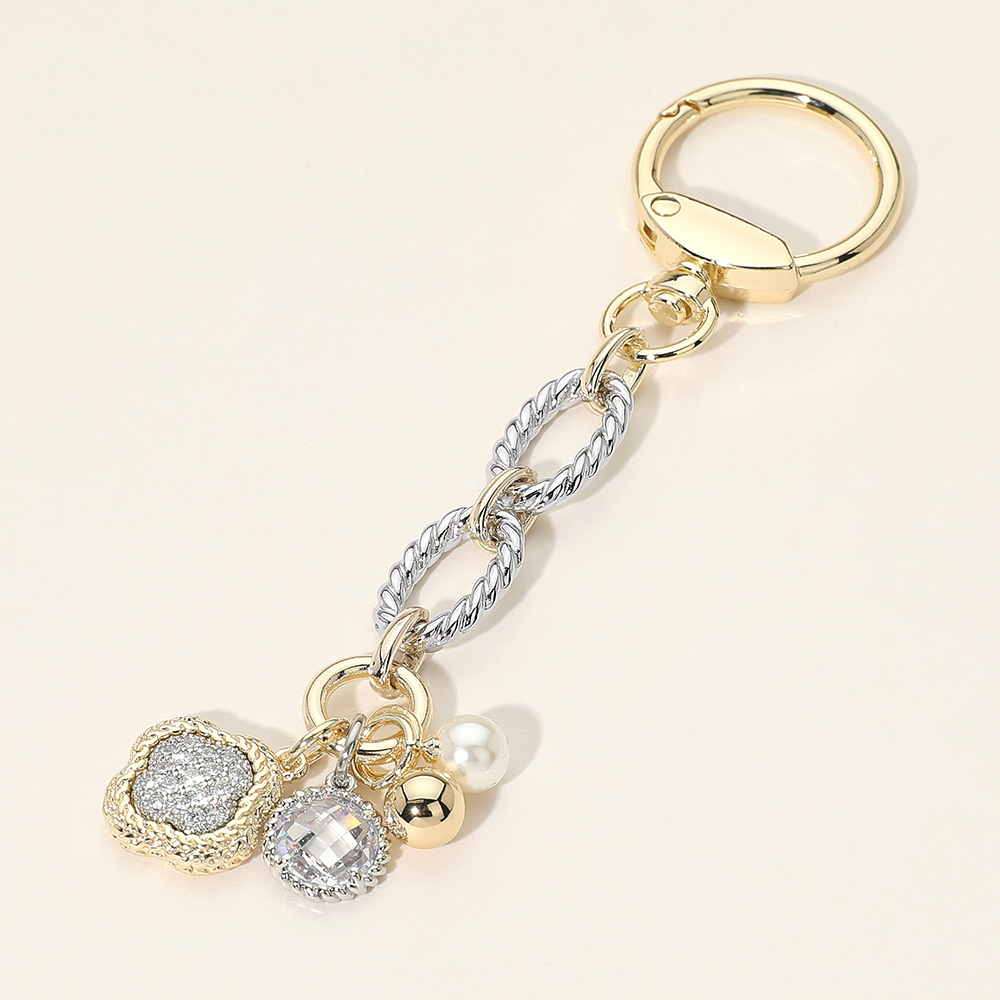 14K Gold Plated CZ Heart Square Pearl Cluster Charm Drop Keychain Bag Charm