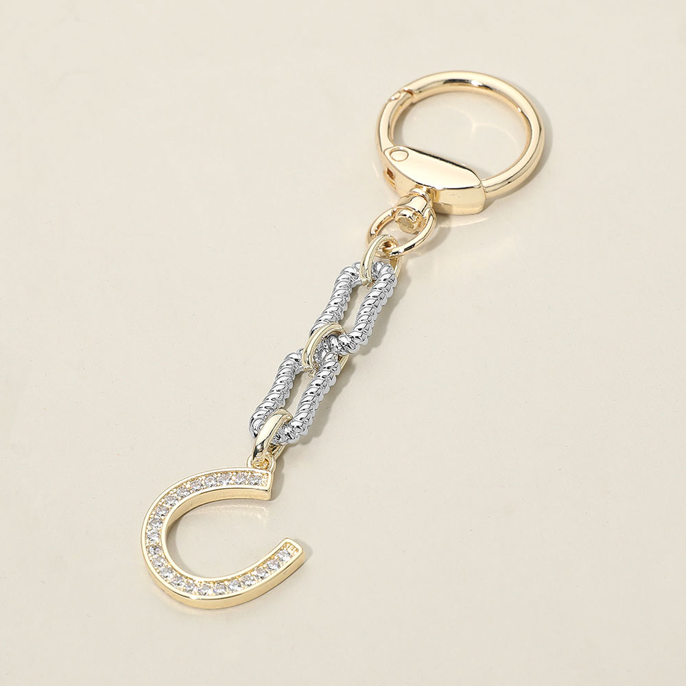 Details • Size : 4.75" L, 1" X 1" • A refined keychain featuring an initial charm accented with shimmering detailing and linked chain elements. Designed to add a personal touch to everyday essentials, it offers a polished, stylish look that suits bags, keys, and accessories alike. • CZ Cubic Zirconia • Gold Dipped