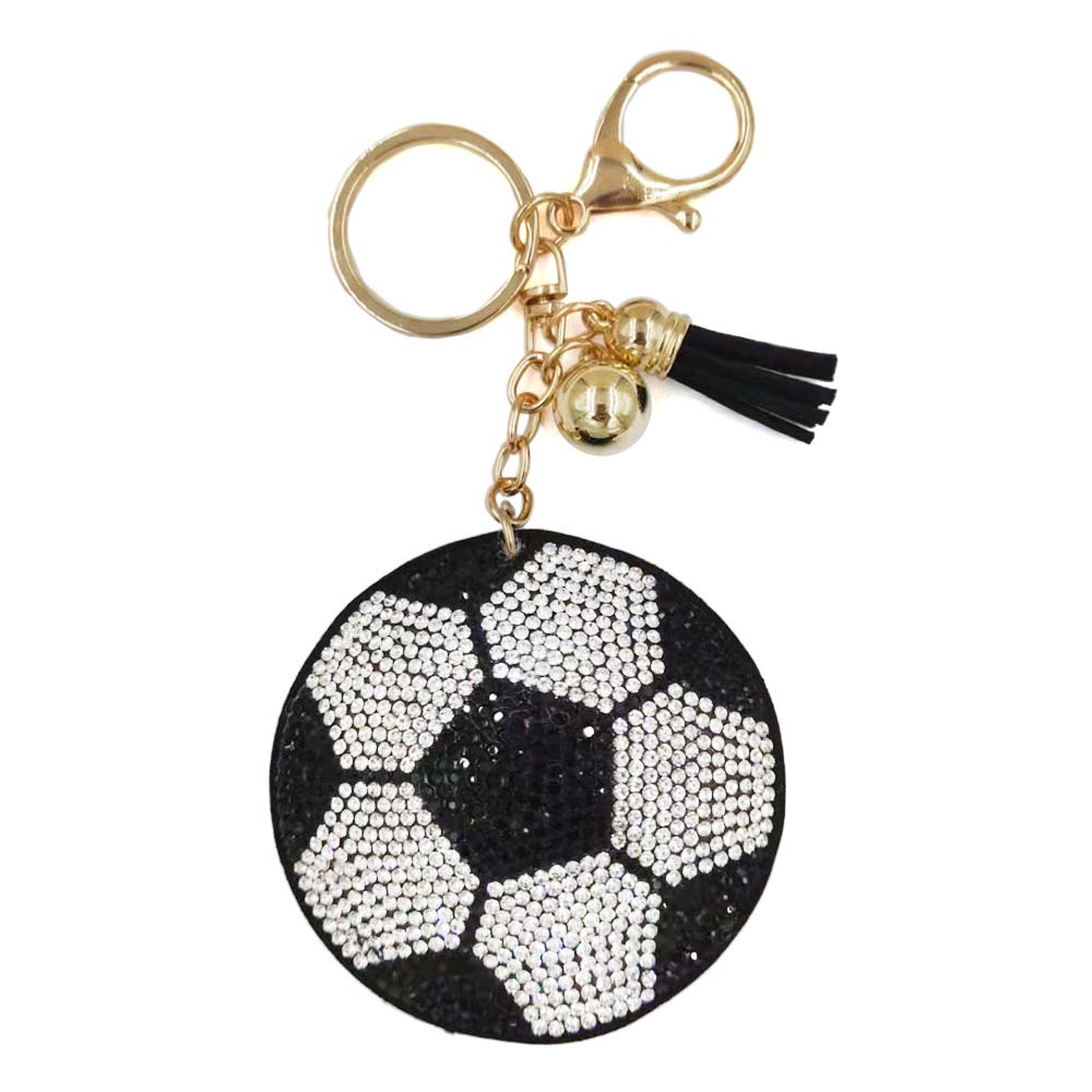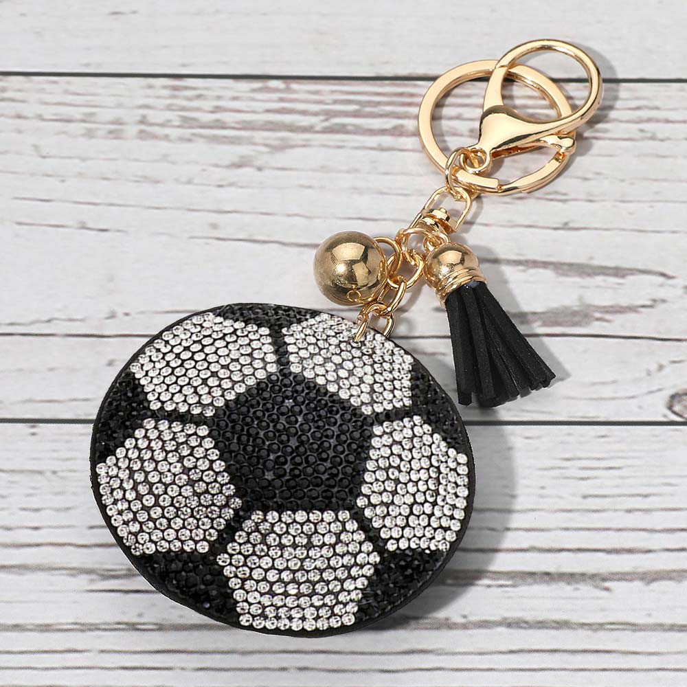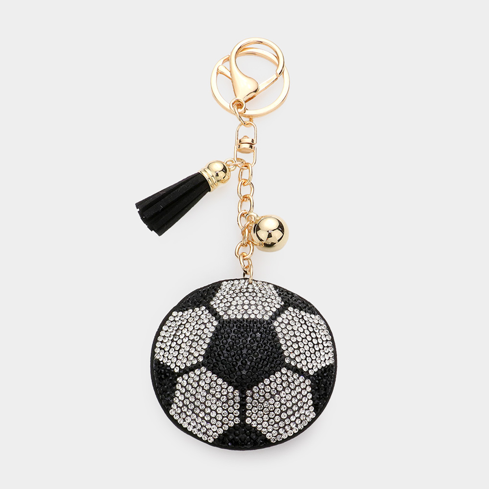 Details • Size : 2.5" X 2.5", 6.25" L • Shine with this soccer-inspired keychain featuring dazzling crystal details and a trendy tassel charm. Ideal for sports lovers, players, or fans, it easily clips to keys, bags, or backpacks. A stylish accessory and perfect gift that combines athletic passion with sparkling elegance. • Lead and Nickel Compliant