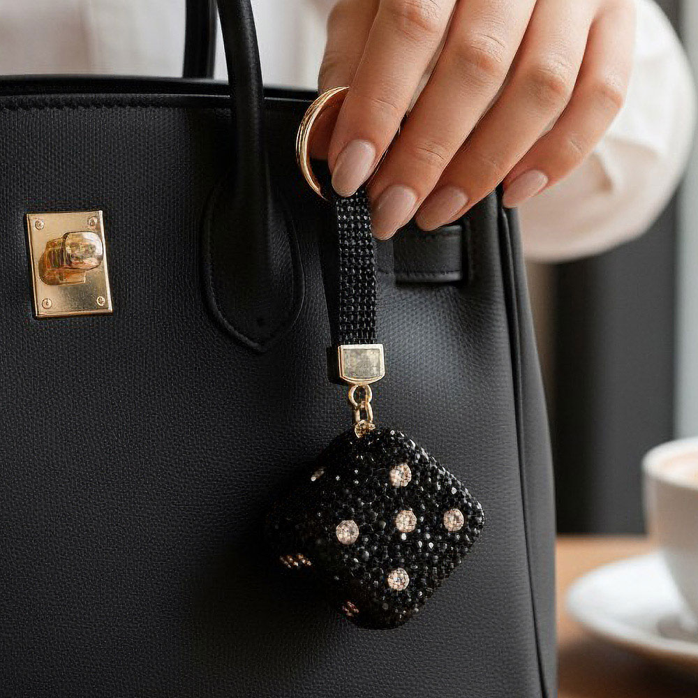 Details • Size : 5.6" L, 1.2" X 1.2" X 1.2" • A chic cube dice charm keychain with faceted sparkle detail that adds a stylish accent to keys, bags, or accessories. Compact yet eye-catching, it’s ideal for everyday use or gifting, combining modern design with a touch of glamour for effortless, polished flair.