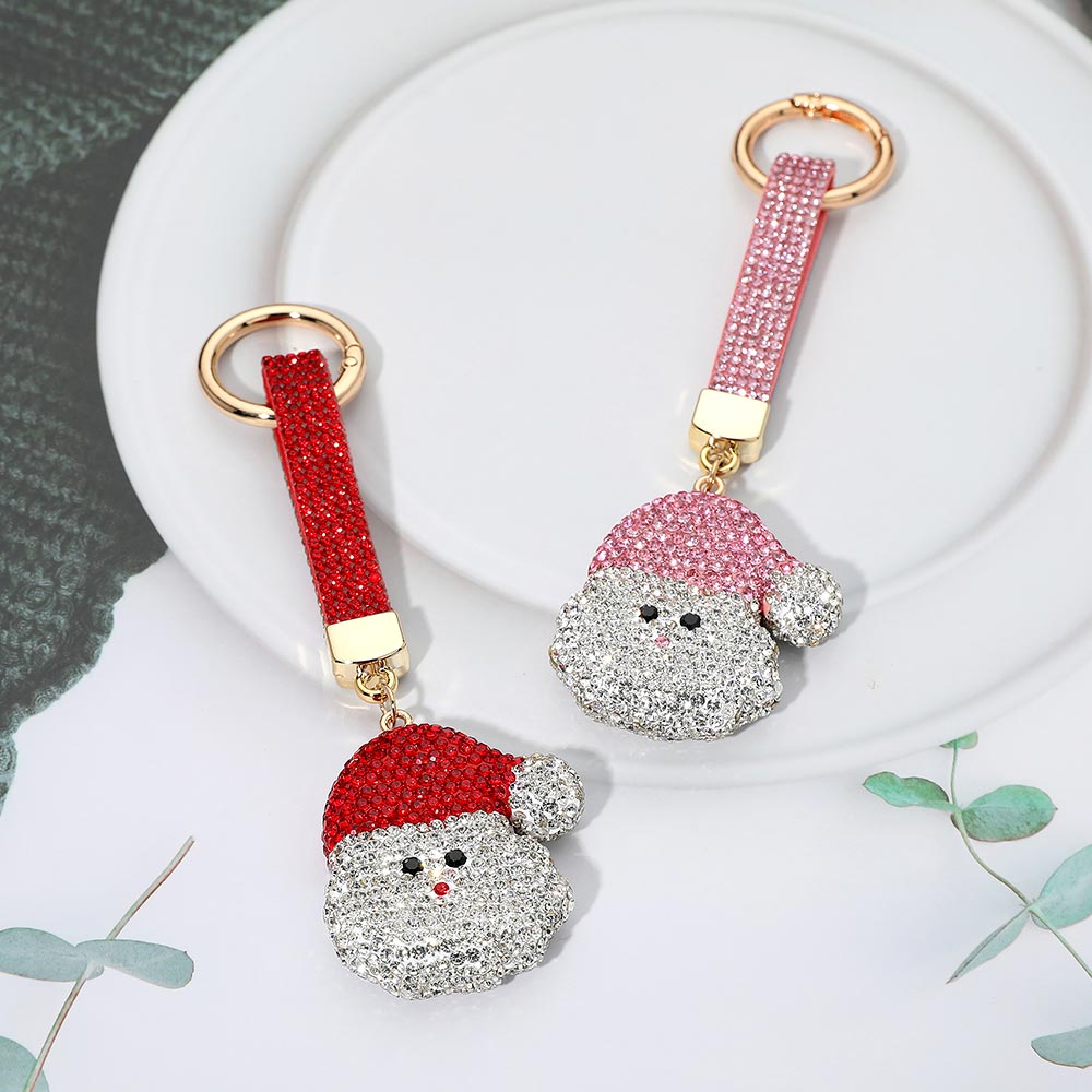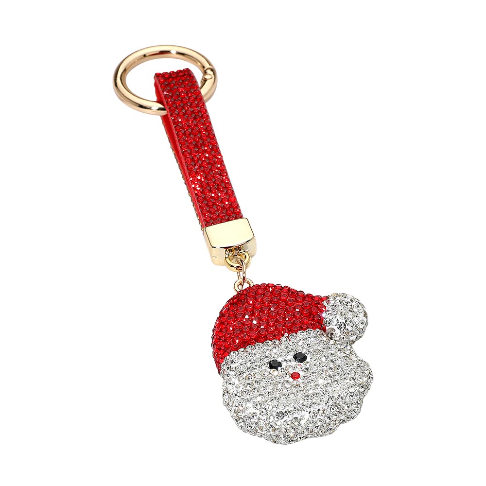 Details • Size : 1.7" X 2", 5.5" L • Festive Santa Claus keychain covered in shimmering rhinestones with a matching strap for easy use. A fun and sparkling holiday accessory perfect for decorating keys, handbags, or gift wrapping. Brings cheerful Christmas spirit and makes a charming seasonal gift idea. • Lead and Nickel Compliant