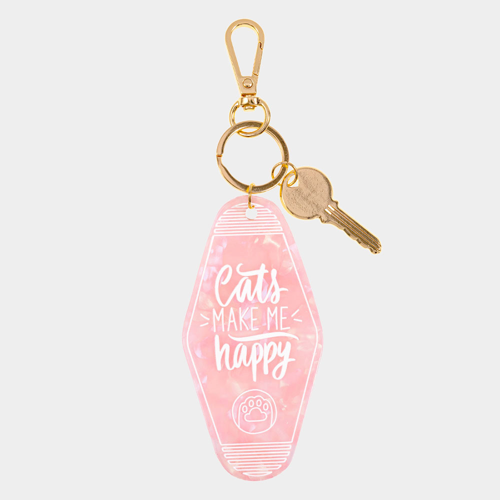 Cats MAKE ME happy Message Celluloid Acetate Keychain