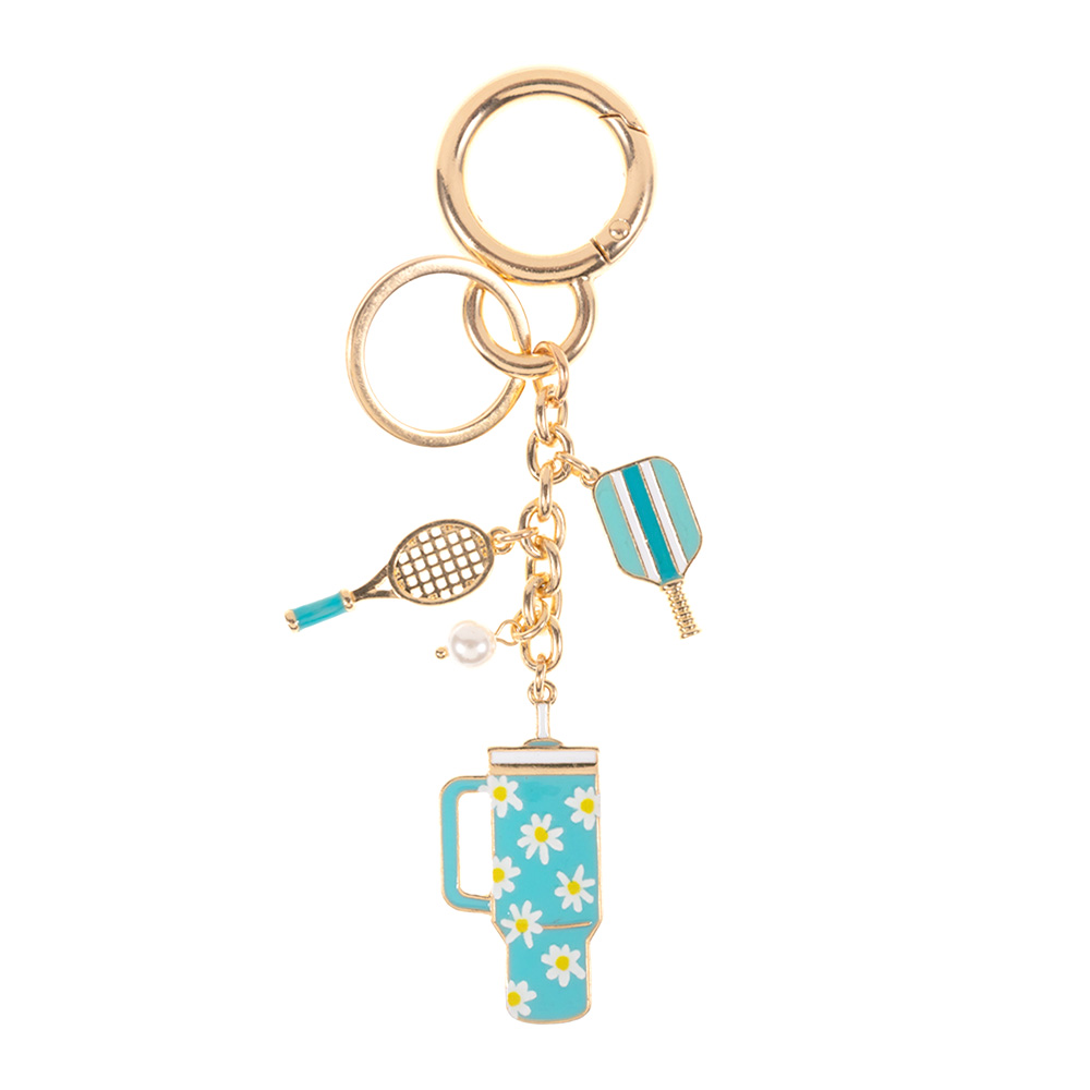• Add playful style to your accessories with this pickleball-themed keychain featuring a paddle, tumbler, and pearl charm. A fun and functional design that makes a perfect gift for players and sports enthusiasts.