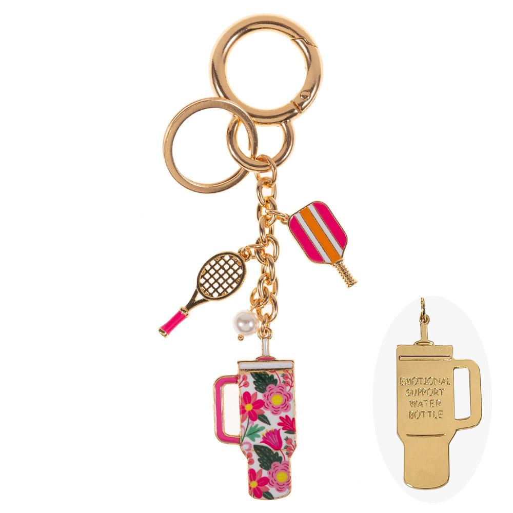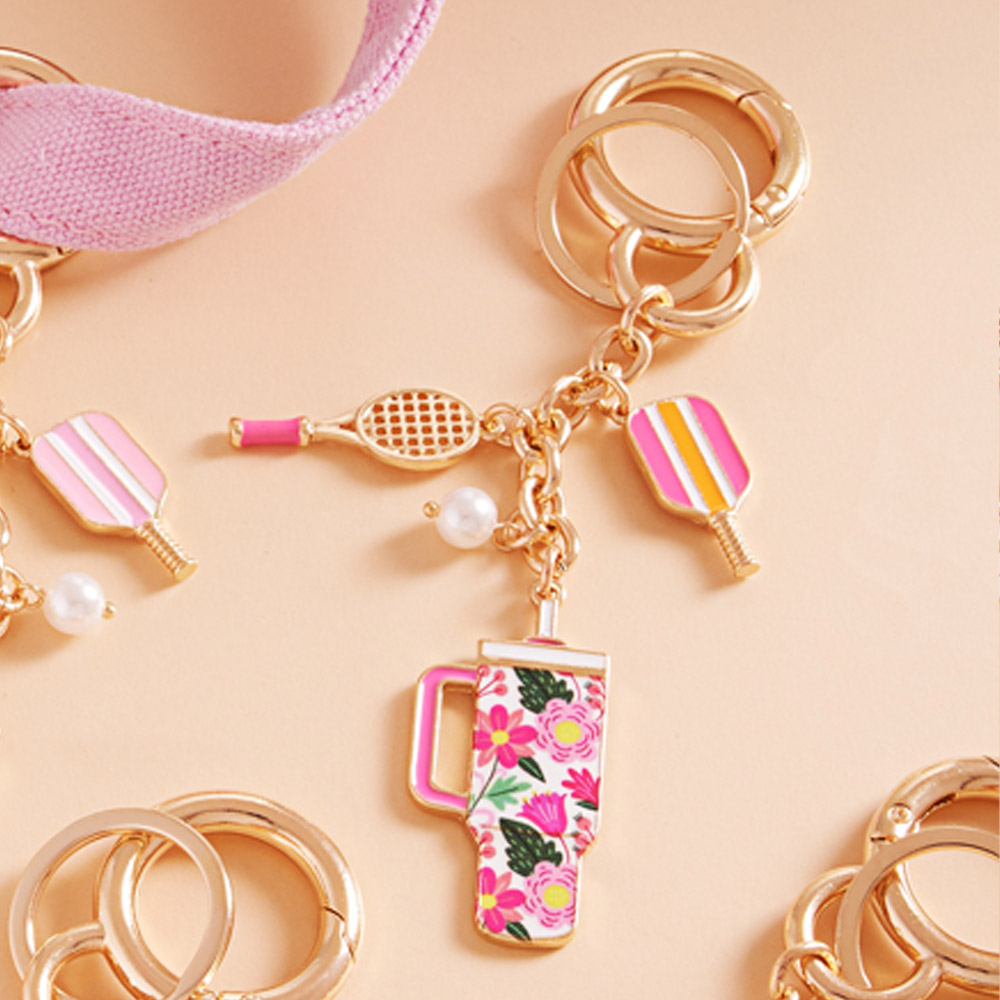 • Add playful style to your accessories with this pickleball-themed keychain featuring a paddle, tumbler, and pearl charm. A fun and functional design that makes a perfect gift for players and sports enthusiasts.