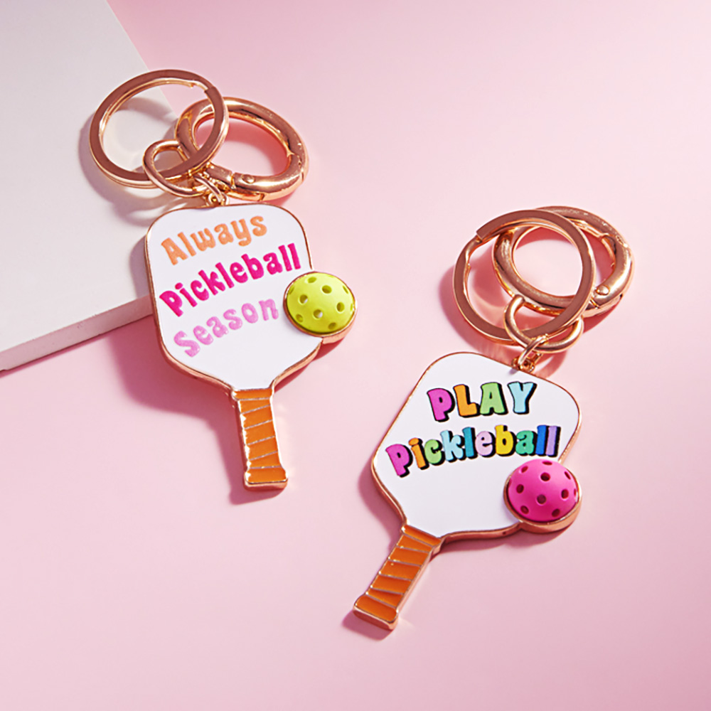 Enamel PLAY PICKLEBALL Message Pickleball Paddle Keychain