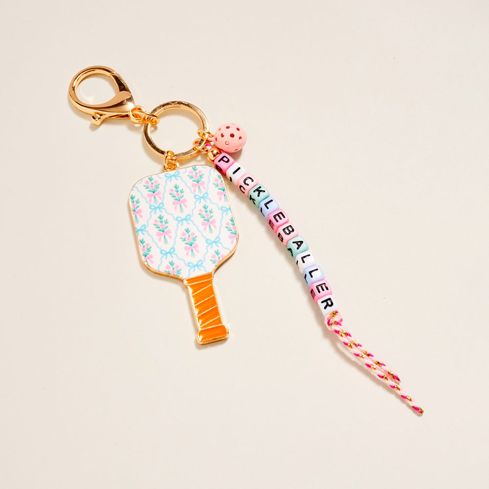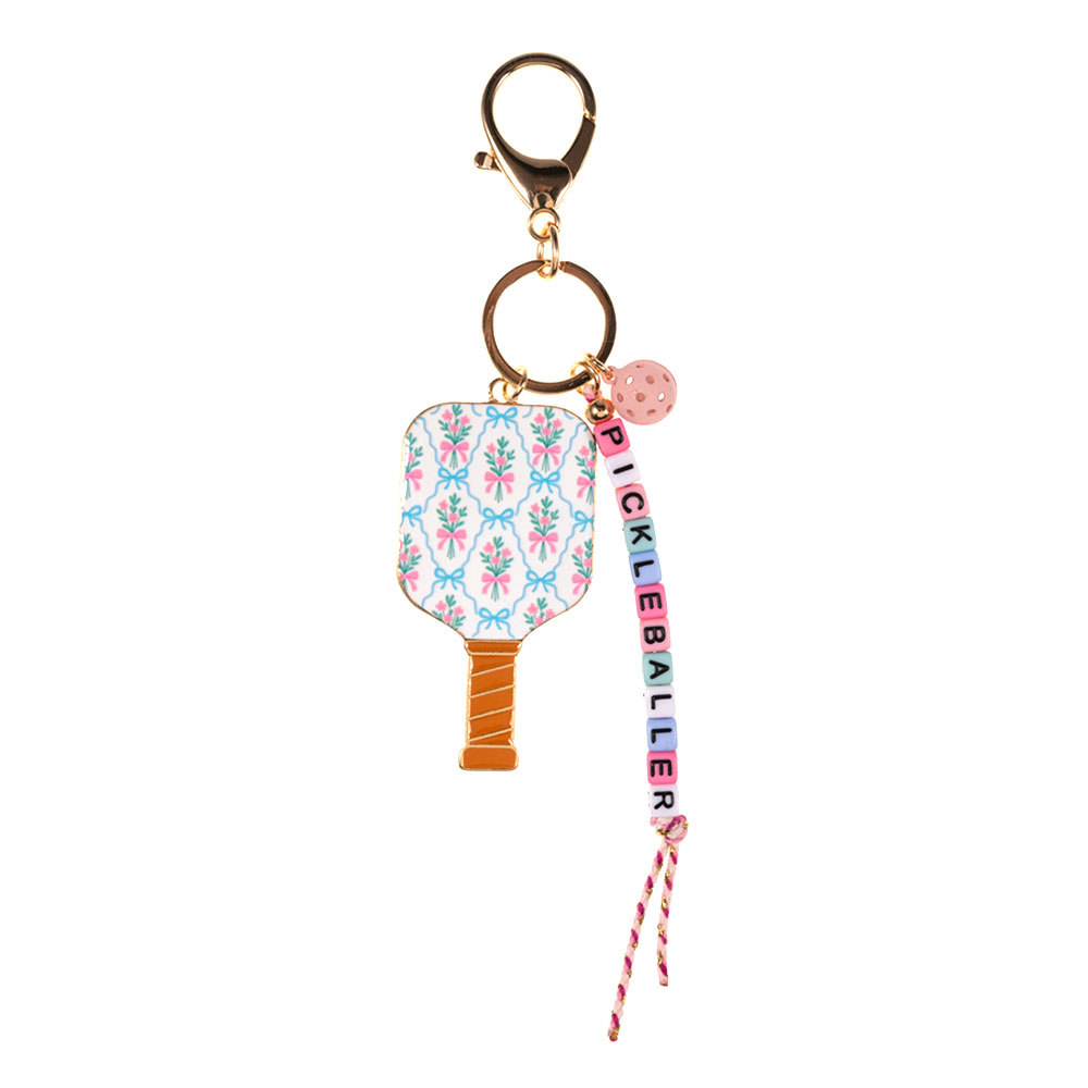 Floral Pickleball Paddle PICKLEBALLER Beaded Keychain Bag Charm
