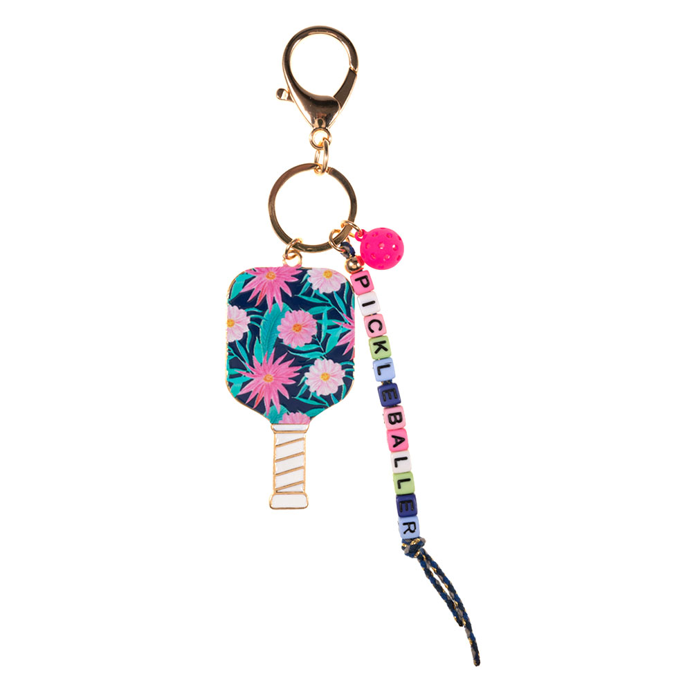 Floral Pickleball Paddle PICKLEBALLER Beaded Keychain Bag Charm