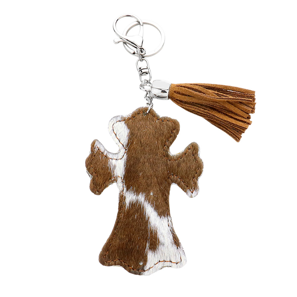 Details • Size : 2.75" X 4", 6.75" L • This cross keychain with tassel combines style and practicality, making it a meaningful accessory for everyday use. Designed with a unique finish and sturdy hardware, it adds a personal touch to your keys, bags, or backpacks while ensuring durability and charm. • Fur Color May Vary