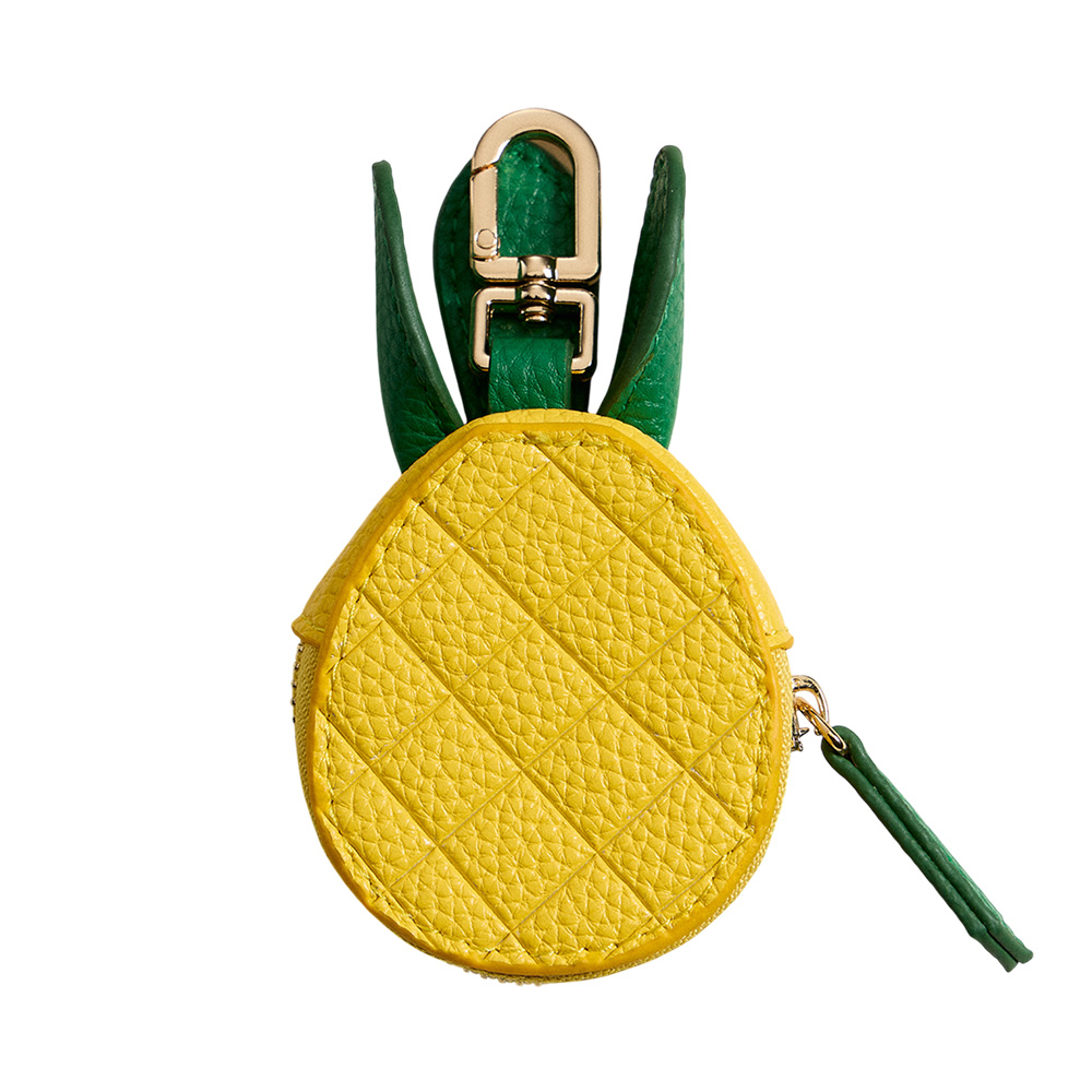 Details • Size : One Size • Zipper closure for secure storage • Convenient clip-on function • Polished gold-tone keyring with clasp hardware • Material: Premium textured genuine leather • Lightweight and compact • Best for holding small essentials, enhancing bags, or gifting • Fun pineapple-shaped keychain coin purse with zipper closure and sturdy clip for attaching to keys or bags. Perfect for holding coins, small accessories, or earbuds, this compact purse combines tropical charm with practical everyday use. A playful accessory that adds style and function on the go.