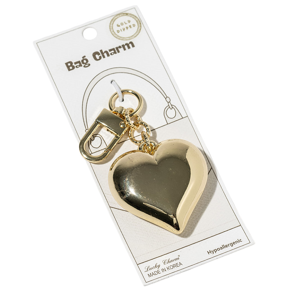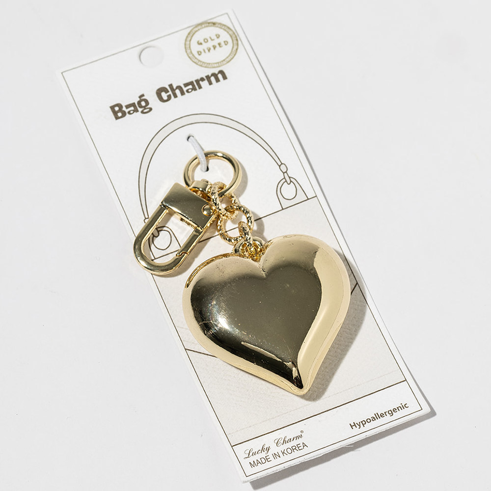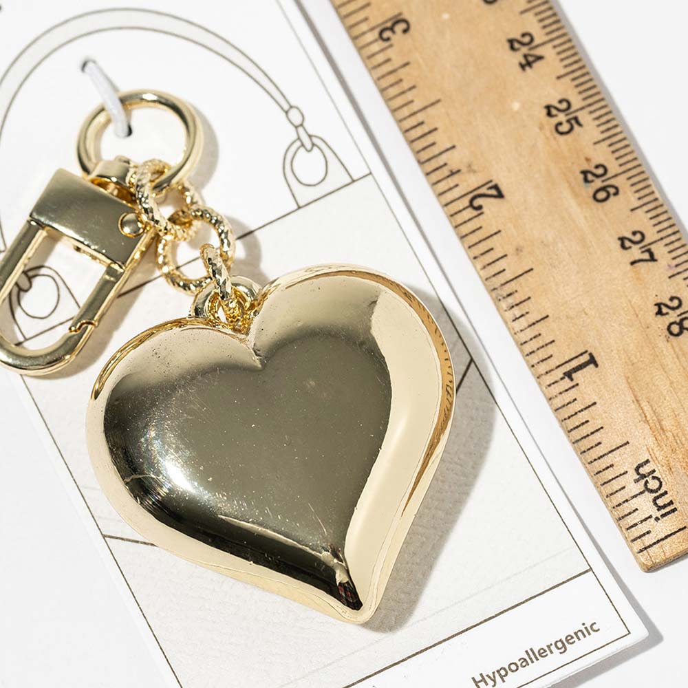 Gold Dipped Bold Puffy Heart Drop Keychain Bag Charm