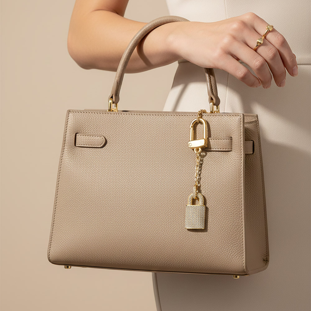 • Stylish padlock bag charm designed with sparkling crystal accents for a bold, modern statement. Clips easily onto handbags, totes, backpacks, or keys to add shine and personality. A chic accessory perfect for gifting, trend-driven displays, and boutique collections seeking eye-catching detail.
