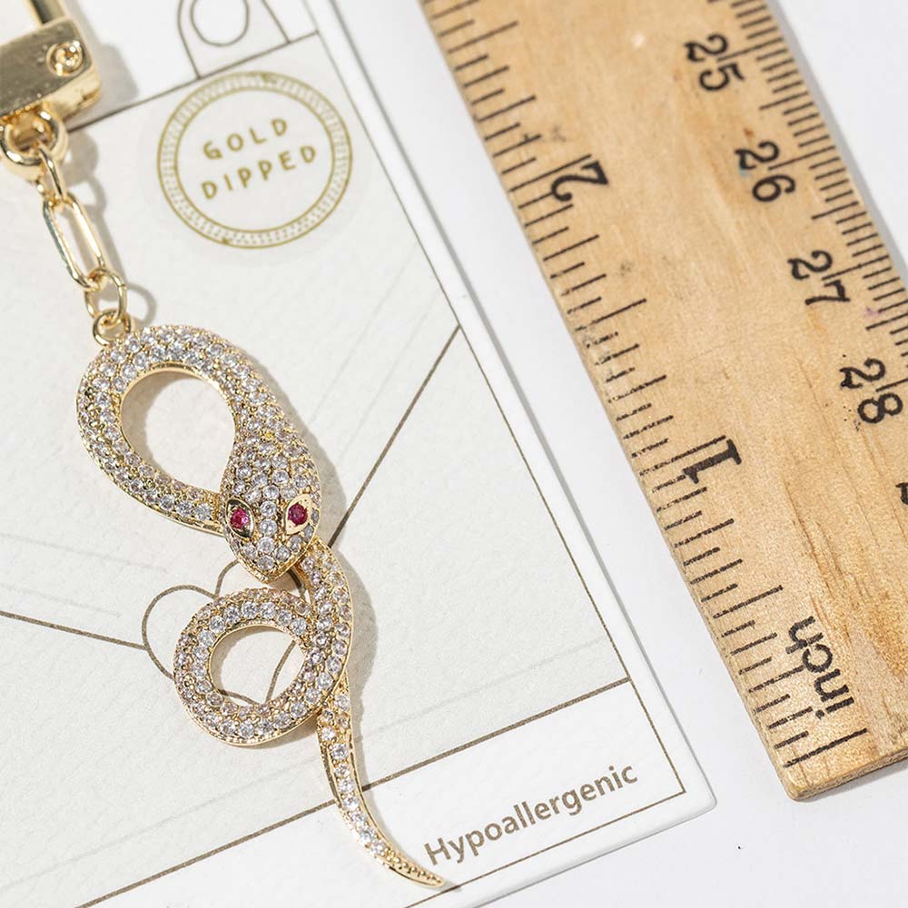 Gold Dipped CZ Pave Snake Drop Keychain Bag Charm