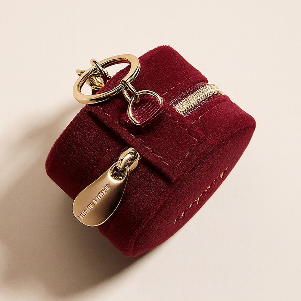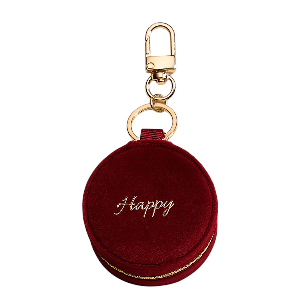 Details • Size : 2.25" X 1.5" • Zipper closure for secure storage • Polished gold-tone keyring with clasp hardware • Compact storage for rings, earrings & small jewelry • Ideal for travel, everyday use, or thoughtful gifts • Keep your jewelry safe and organized with this compact round travel case. Features a zipper closure, interior slots for rings and earrings, and a keychain clip for convenience. Perfect for travel, handbags, or daily use, this portable storage box ensures your accessories stay secure anywhere.